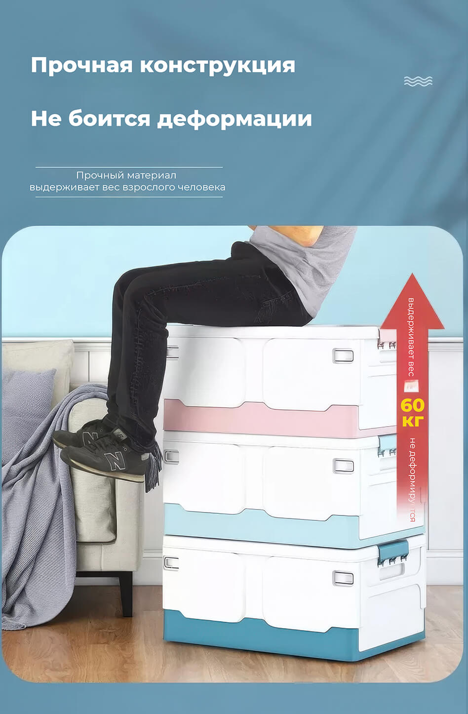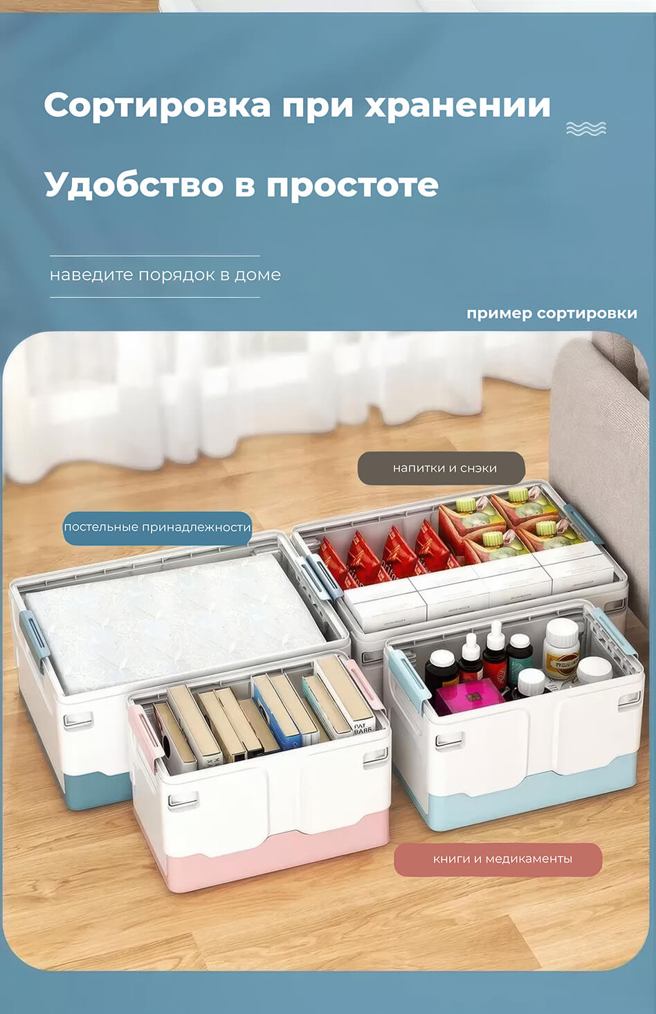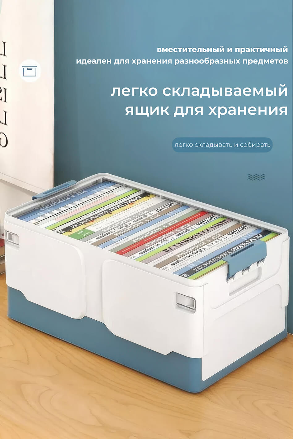 Складной ящик 370х240х240 мм, бело-синий – удобное и стильное решение для хранения