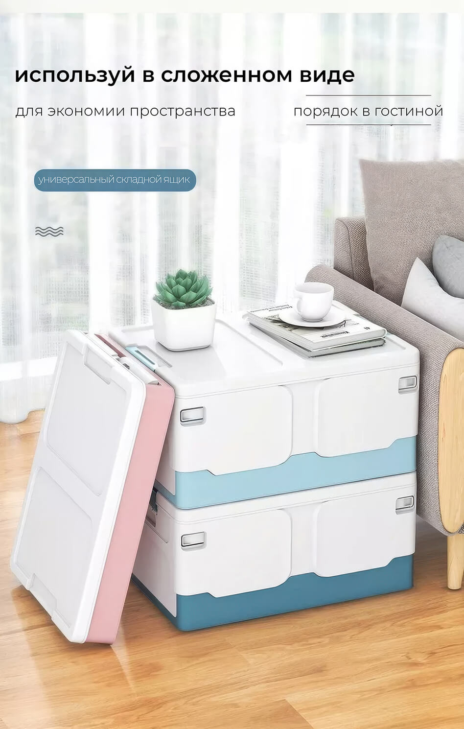 Этот пластиковый складной ящик сочетает в себе прочность, функциональность и современный дизайн. Белые стенки придают ощущение чистоты и простора, а синее дно добавляет глубины и элегантности, создавая гармоничное сочетание. Пластиковый контейнер идеально подходит для хранения одежды, игрушек, документов, мелочей и бытовых принадлежностей.